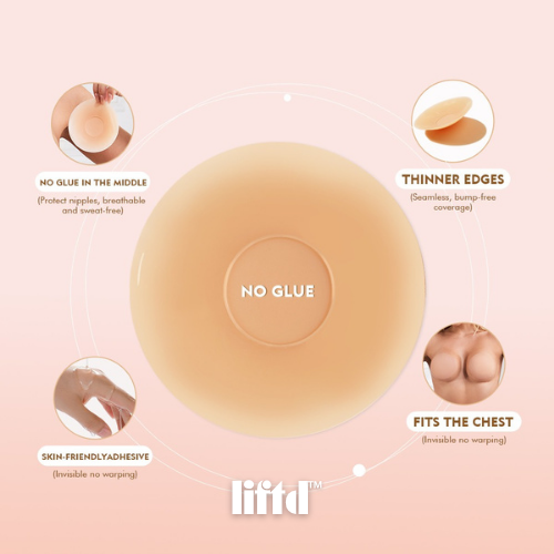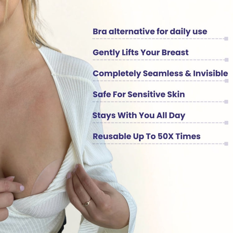Discover Liftd's gentle, medical-grade adhesive that lifts and shapes without irritation. Feel confident in open-back dresses or deep-V tops all day long with seamless comfort.